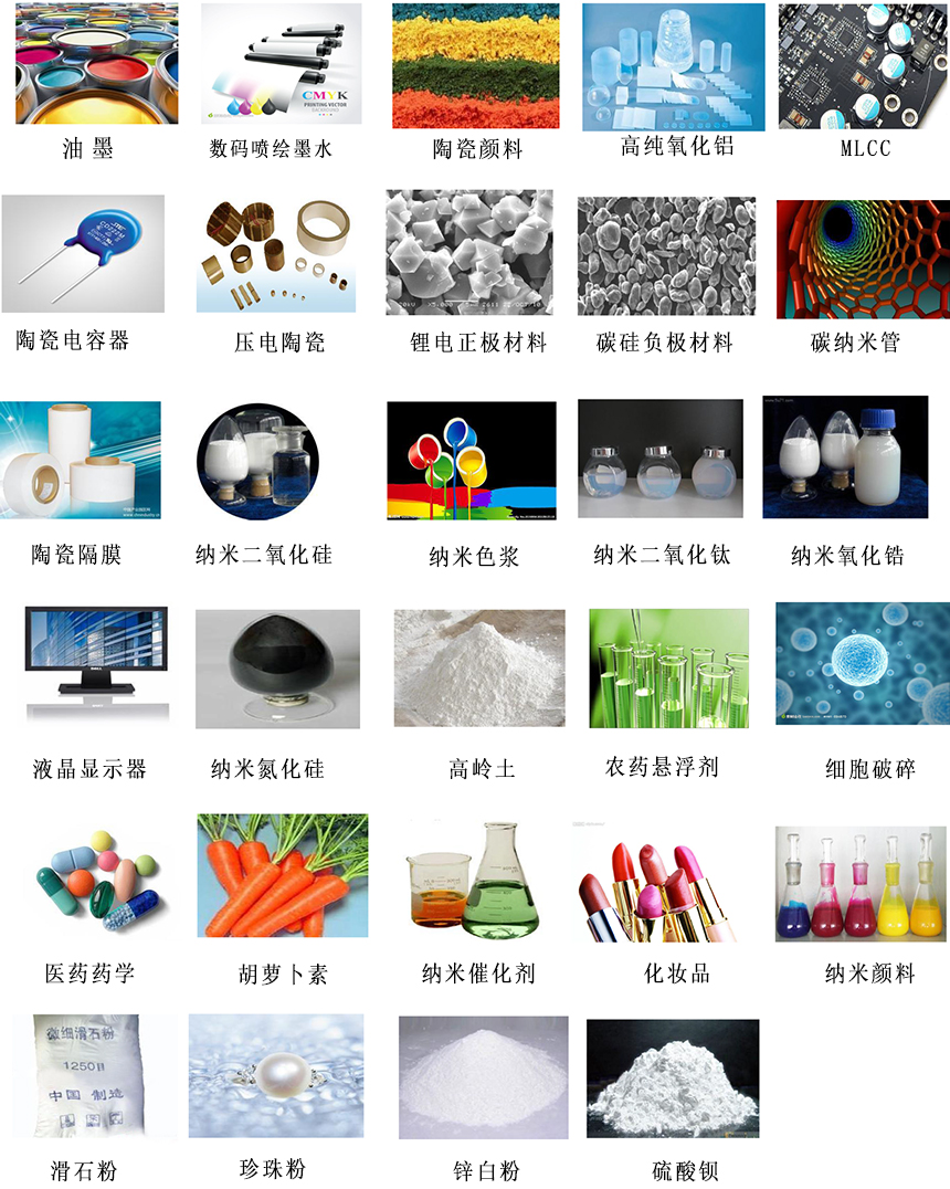 陶瓷材料、电池材料、数码喷墨、高性能涂料、制药等领域的研究与测试