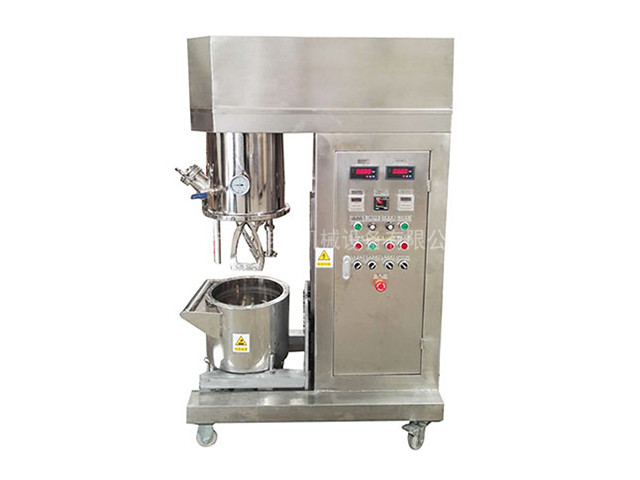 运转部件有主锅搅拌系统、主锅均质系统,主锅升降系统,副锅搅拌系统,真空泵系统。控制通过面板上的按钮进行,可控制照明灯的照明与熄灭,控制主锅搅拌的运转,控制主锅分散的运转,控制真空泵的运转以及主副锅的加热。
